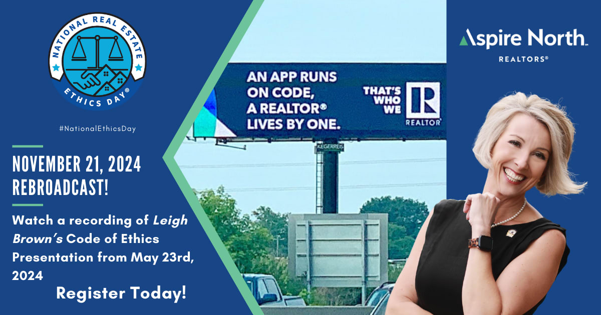 3-hour ReBroadcast Code of Ethics Training National Real Estate Ethics Day '24. We will replay this presentation by world-renowned speaker Leigh Brown as she goes through the Code of Ethics. If you watched the live broadcast on May 23, 2024, you will not receive ex-credit for this broadcast.